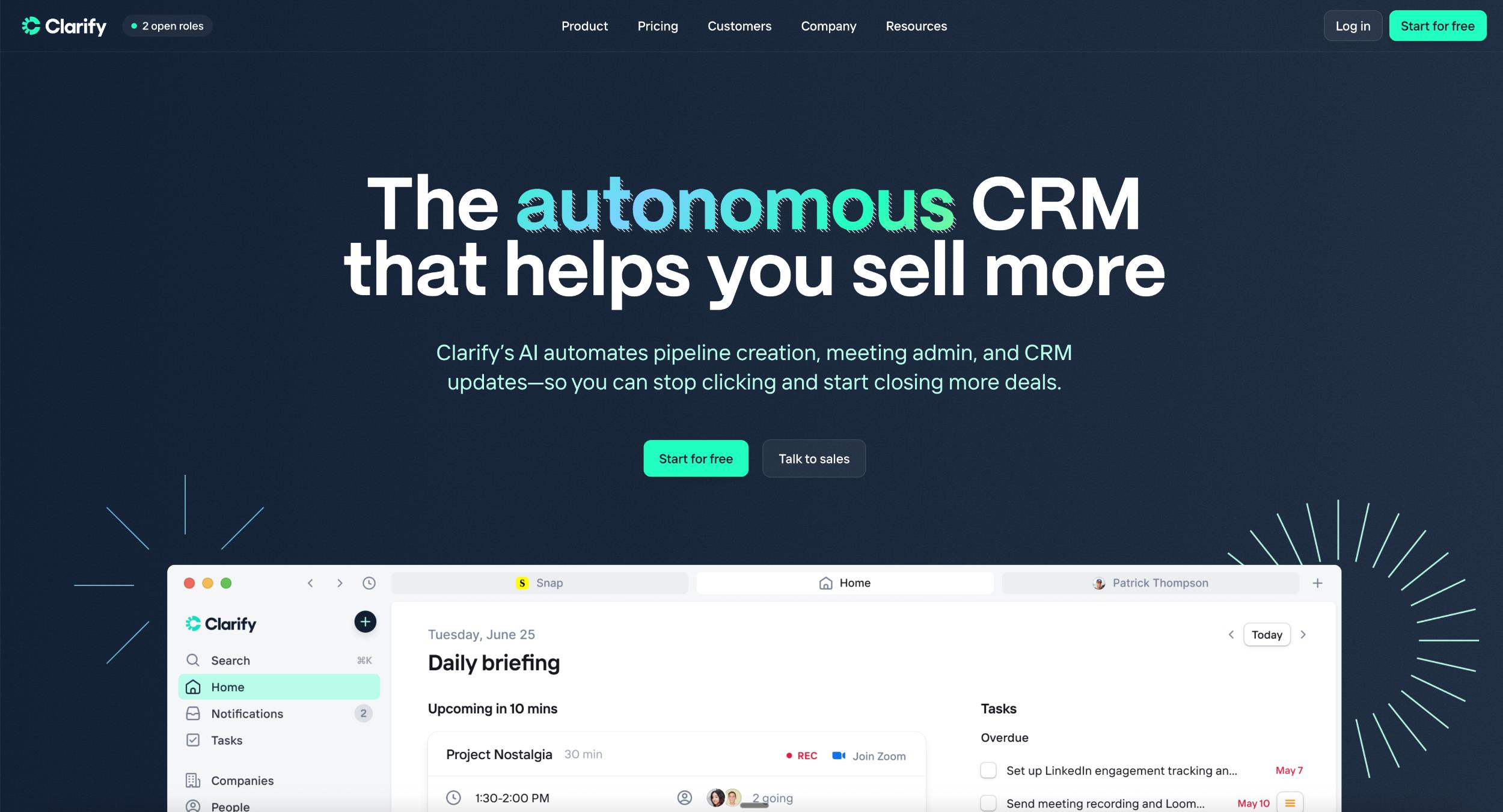 Clarify is built around the idea that a lot of valuable sales data gets lost in conversations, meetings, and notes, and AI can help fix that.